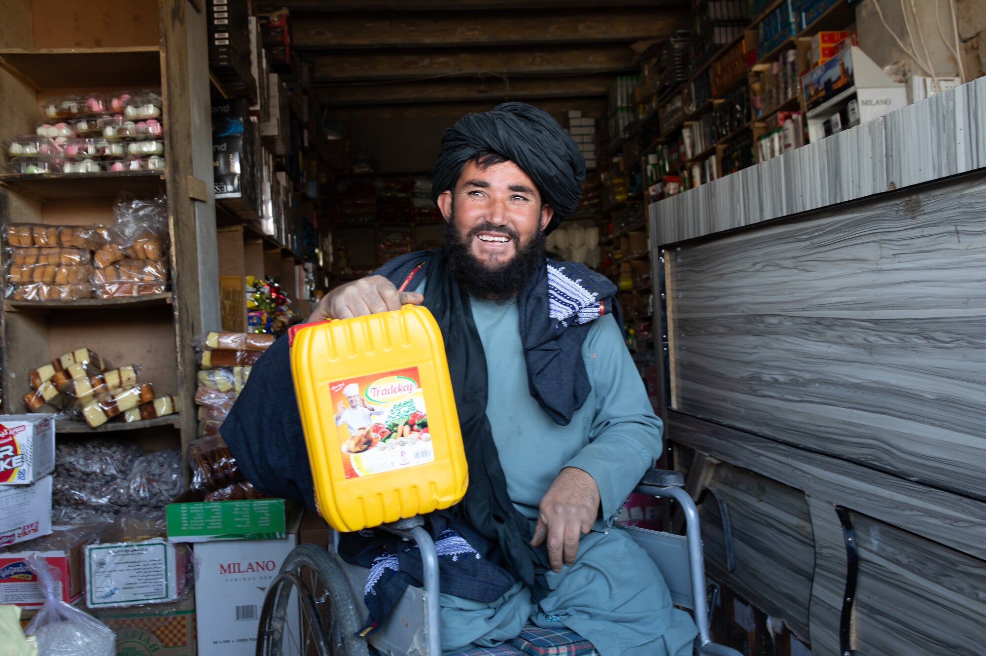 Mohammad Omar fra Afghanistan fikk utdelt et betalingskort hvor familien kunne handle varer for et beløp tilsvarende 1.820 kroner per måned over tre måneder.